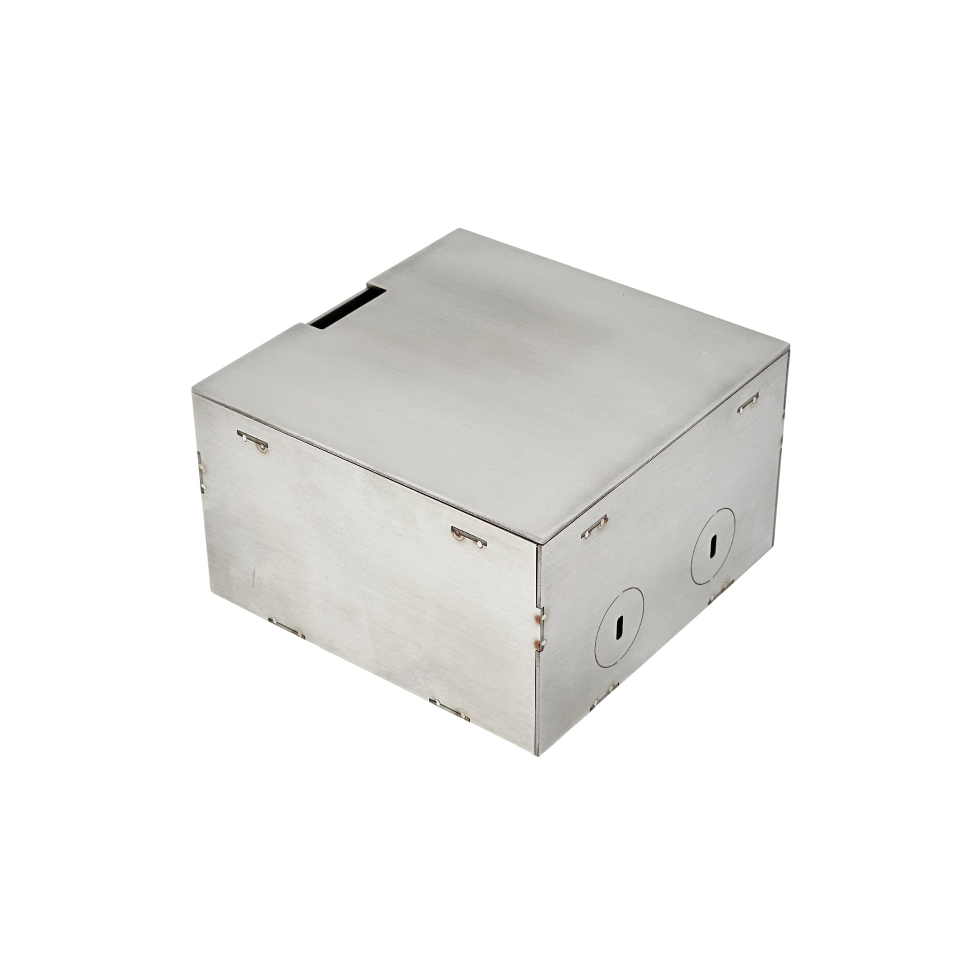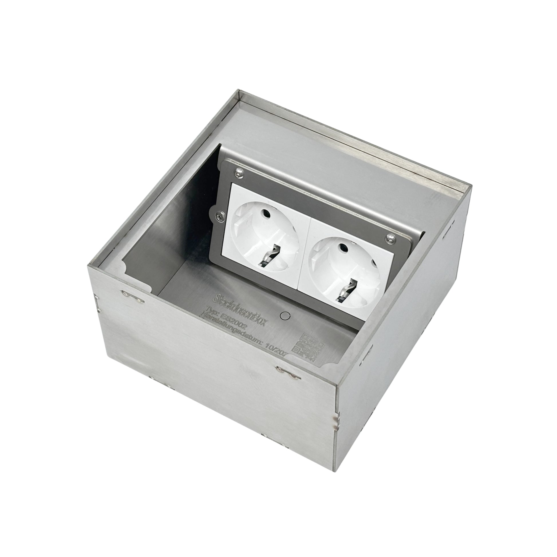 Sehr hochwertig hergestellte Steckdosenbox aus massivem Edelstahl.