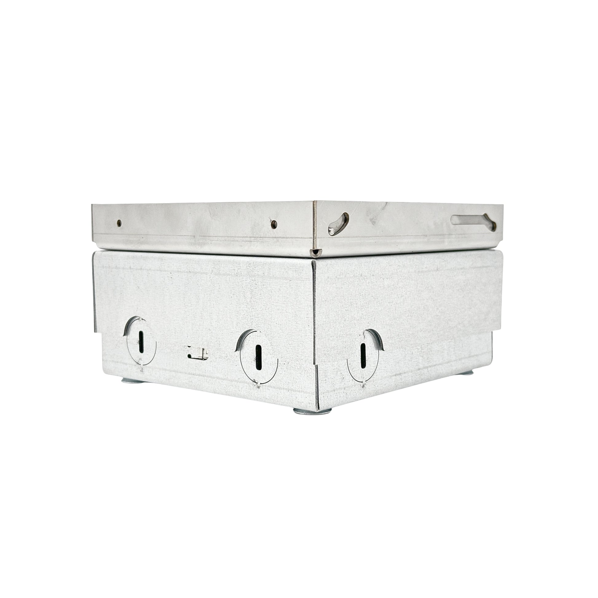 lässt sich der Deckel auch bei eingesteckten Steckern schließen. Die vorgeprägten Einführungsöffnungen für Rohre (M21) ermöglichen eine einfache Installation. Mit den vier Nivellierstützen lässt sich die Box präzise an die Bodenhöhe anpassen.